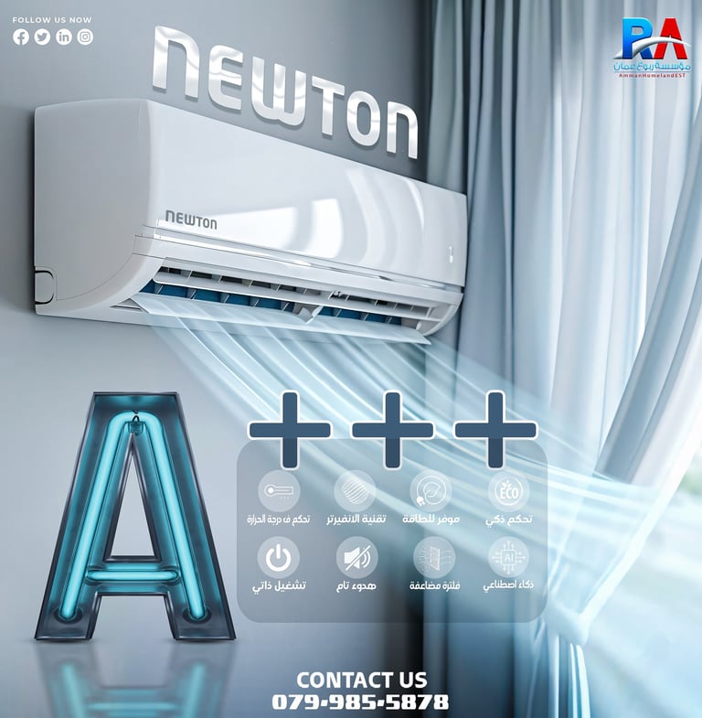 🚀 مع ربوع عمان، استثمر في مكيفات نيوتن وتمتع بأعلى جودة، أقوى ضمان، وتوفير حقيقي في استهلاك الطاقة